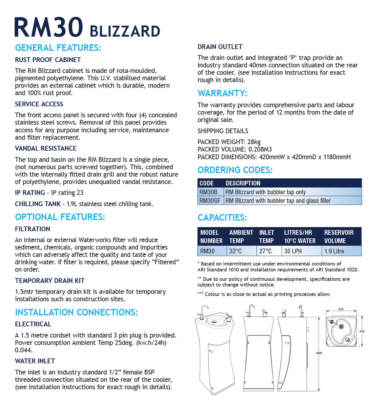 (kw.h/24h) 0.044. Power cord inlet 300mm from base on