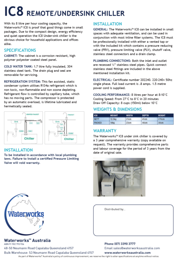 IC8 Under-sink Remote Chiller plus single carbon SWING & TWIST FILTRATION SYSTEM
