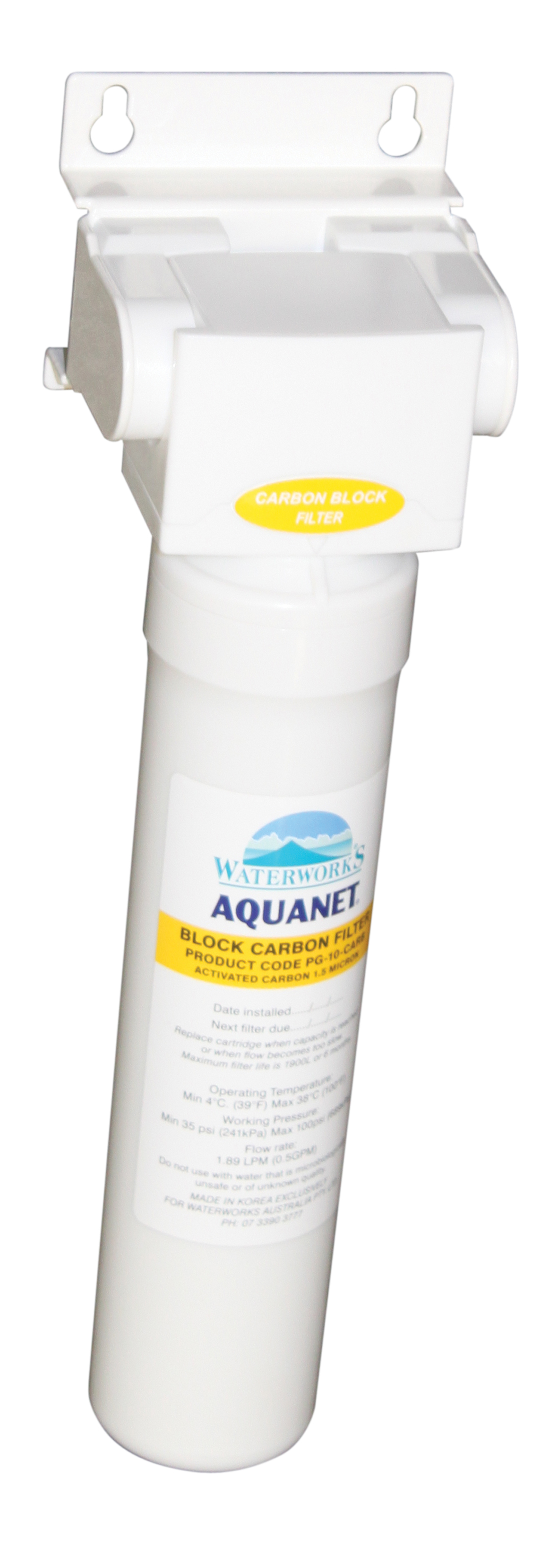 Compact filter head and bracket combination. Includes 1/4" quick connections.